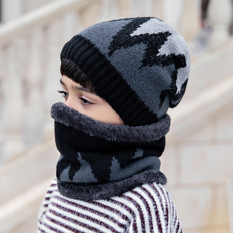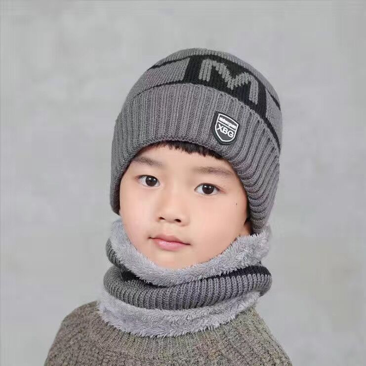 Children's Hats For Autumn And Winter New Boys' Hats And Bibs Set Korean Letters Knitted Hedging Warm Woolen Caps