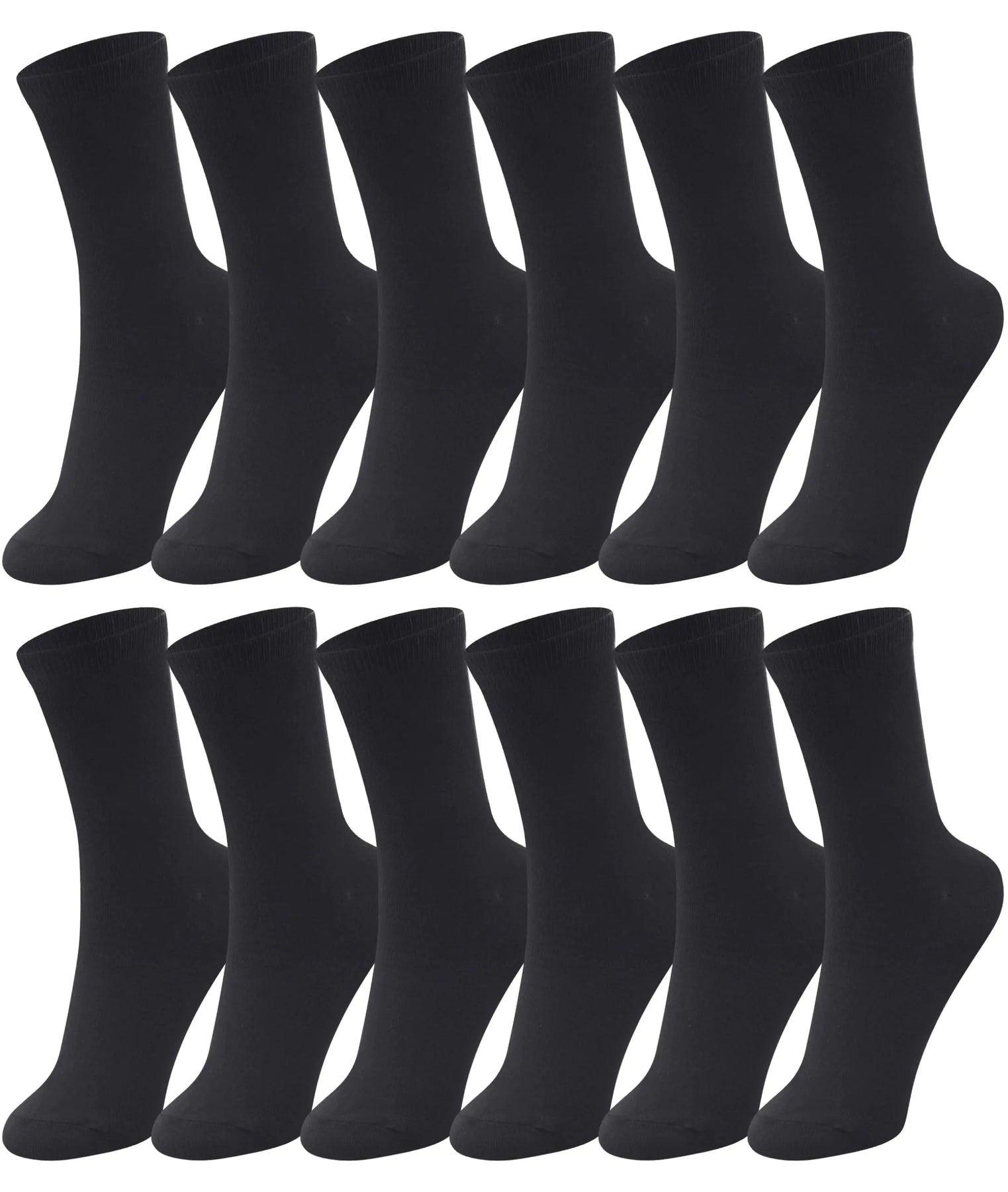 [Black Crew Socks: package include 12 pairs unisex black crew socks sufficient quantity adult socks to meet your wear and replace need. You can wear calf socks outdoor sports fitness hiking running and any type of workout or indoor everyday use "Premium meterial:Duufin womens crew socks made of cotton and polyester material. Soft and moderately thin material keeps your feet warm and breathable the black mid-calf socks for women are suitable for all seasons wearing. Machine washable cold water wash no bleach" "Women Socks Size 5-9:Duufin mid calf socks suitable for womens in US sizes 5 to 9. These womens black crew socks are very stretchy and fit your feet without strangling them" "Stay in place:These lightweight and soft womens crew socks have a mid-calf design with a high elastic cuff that prevents them from slipping or rolling into your shoes. You can wear the black mid calf socks all day and they wont move or slip off." Versatitle style: the womens black crew socks are suitable for everyday wear with dresses shorts or trousers. Whether for birthdays Christmas Halloween or other special occasions the crew socks are a warm gift for your friends loved ones mother or other family members]