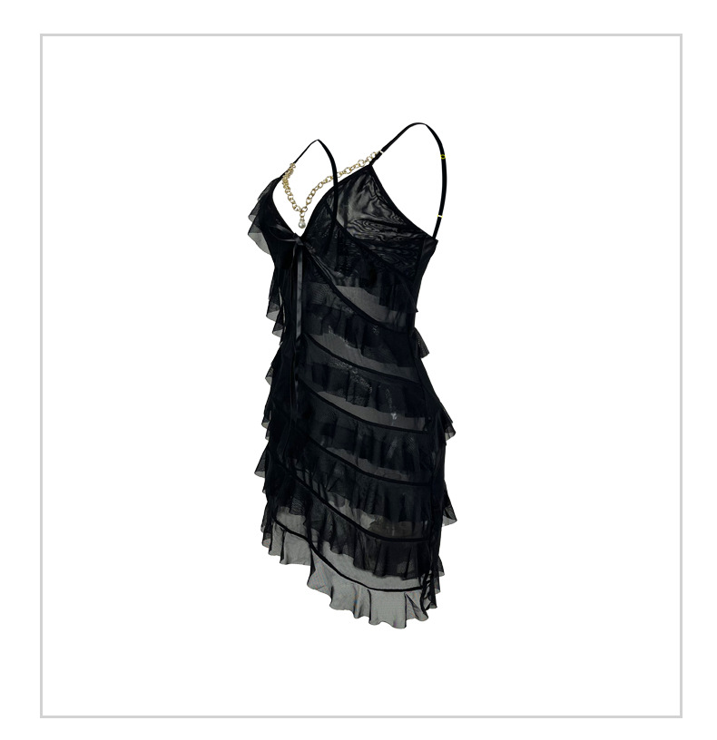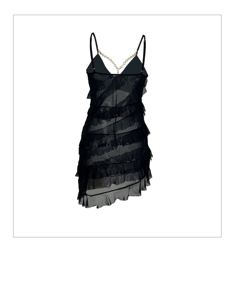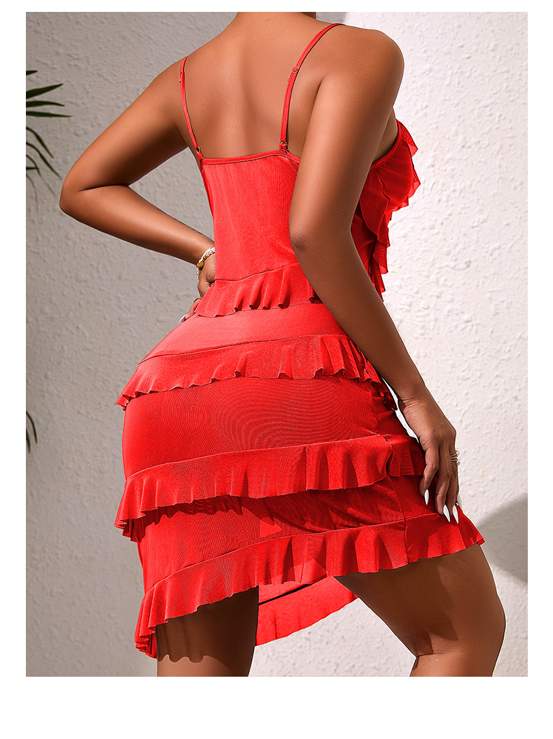 Fashionable Patchwork Ruffle-Trim Camisole Short Dress For Women