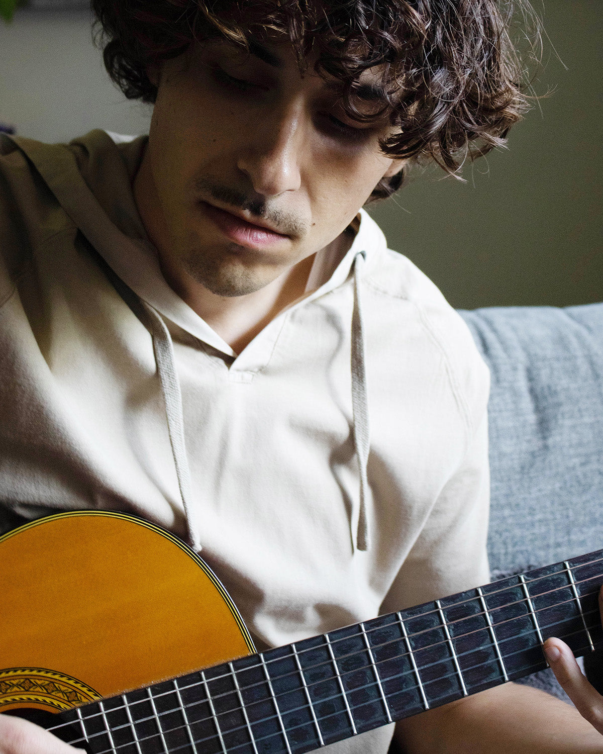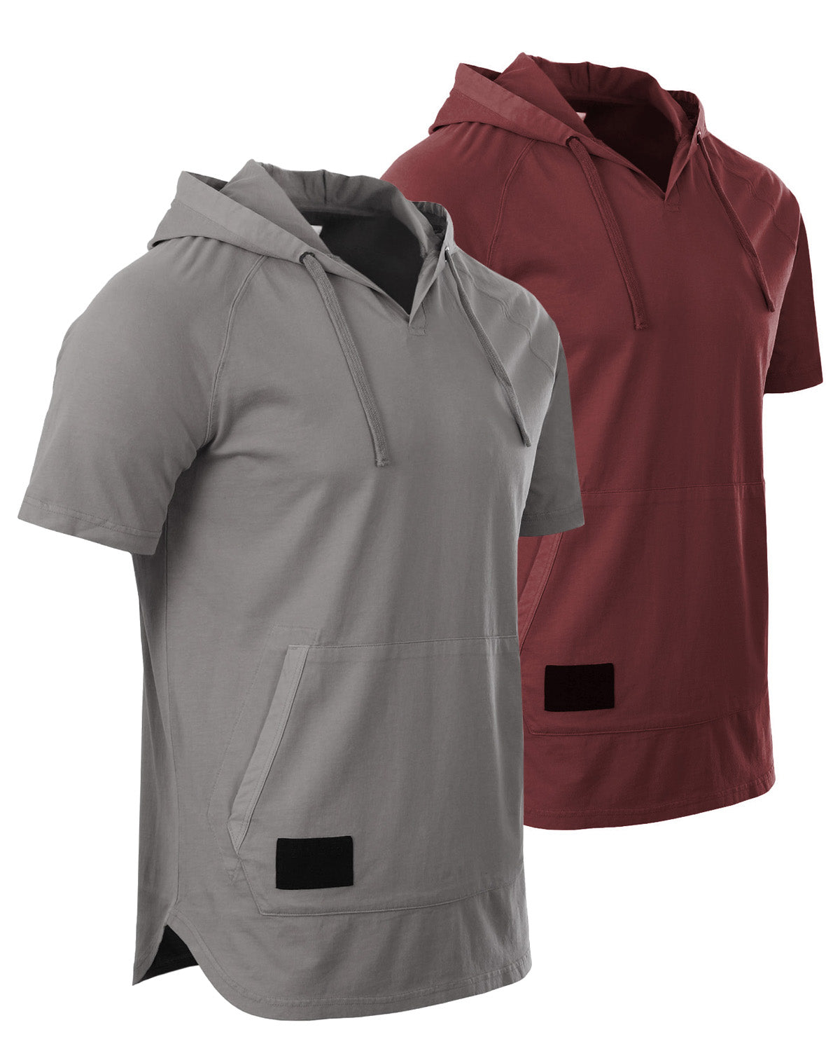 - This is a V-Neck hooded henley without buttons on placket